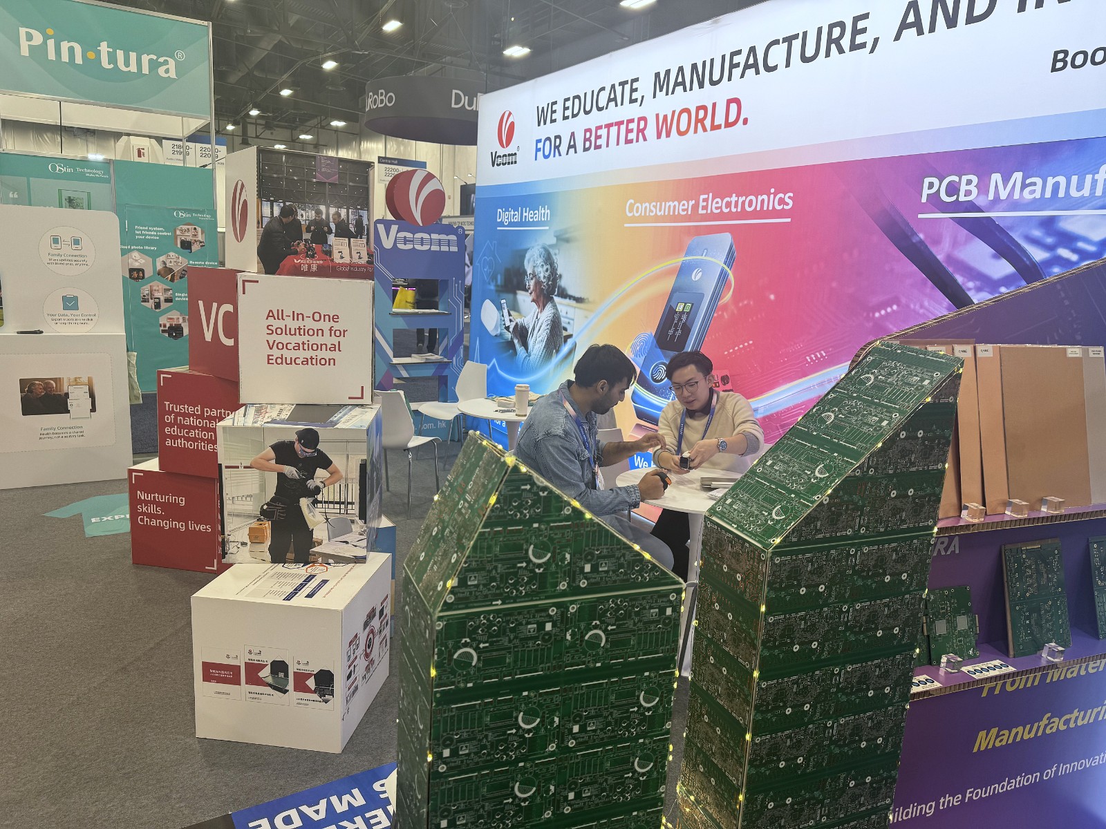 唯康集团首次整合旗下三大业务板块——唯康教育、炜珀贸易、臻福安科技,联合参展并展示了在职业教育、智能电子与大健康领域的实体化解决方案。
